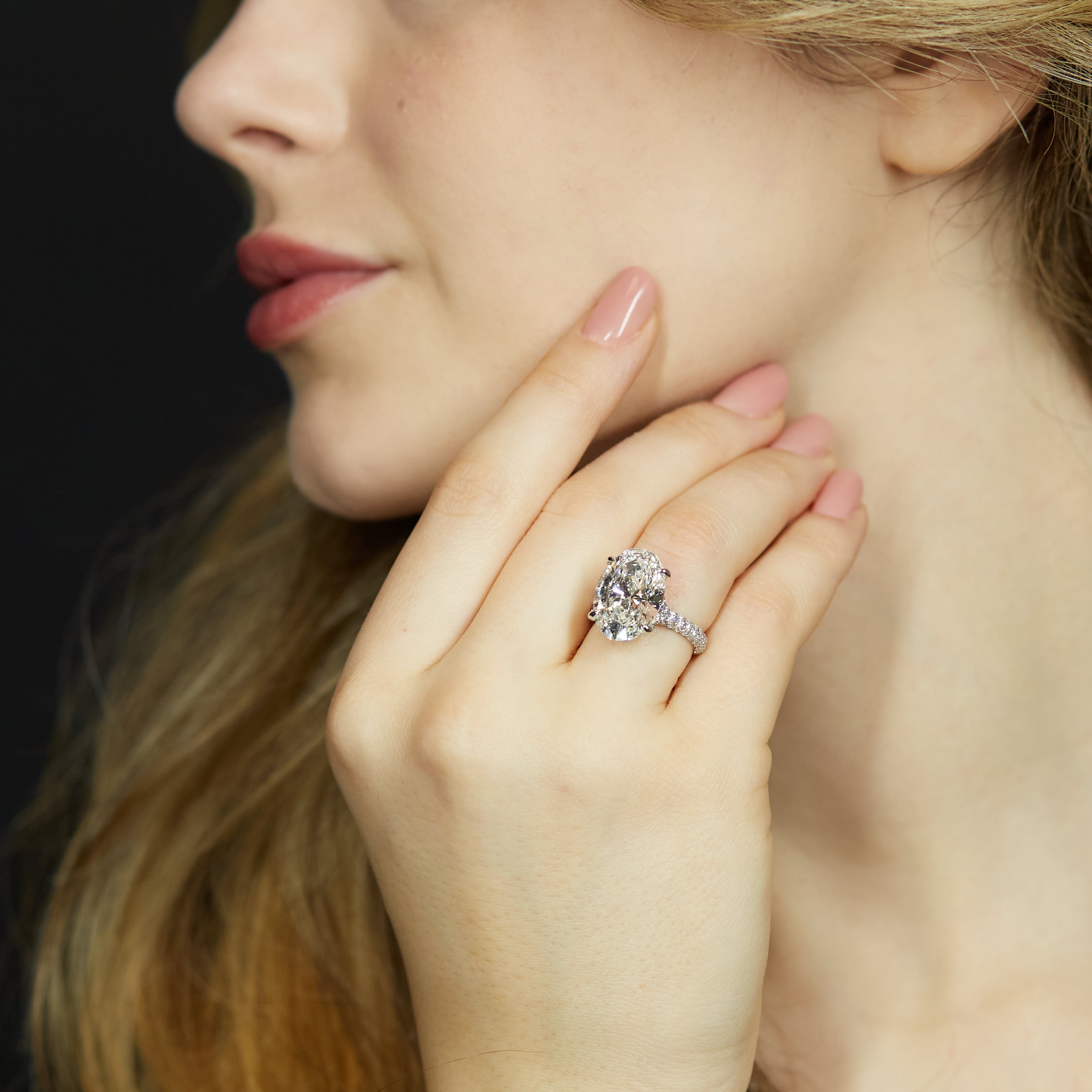 Solitario in oro bianco con diamanti Lab-Grown taglio ovale e brillante, 11,18 carati.