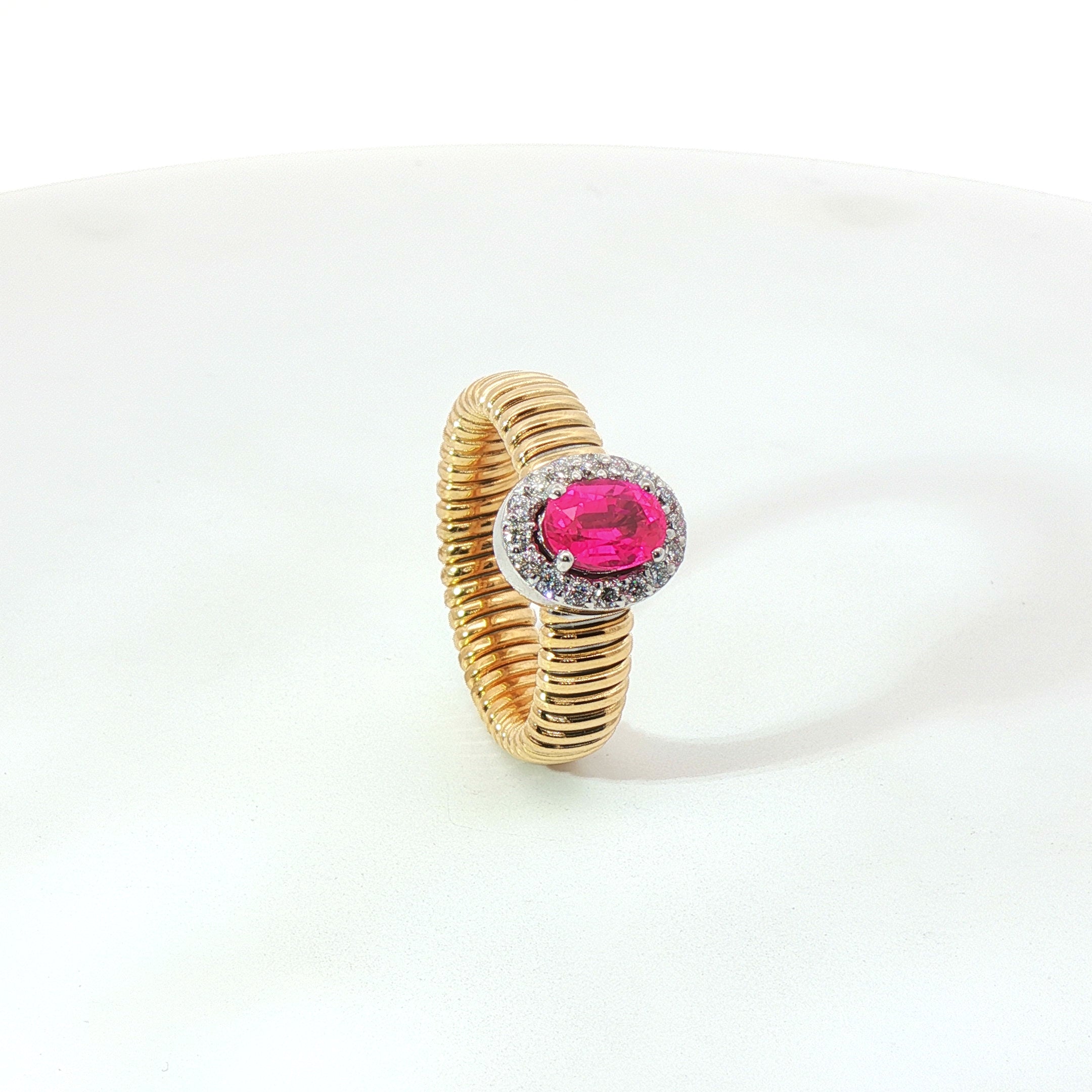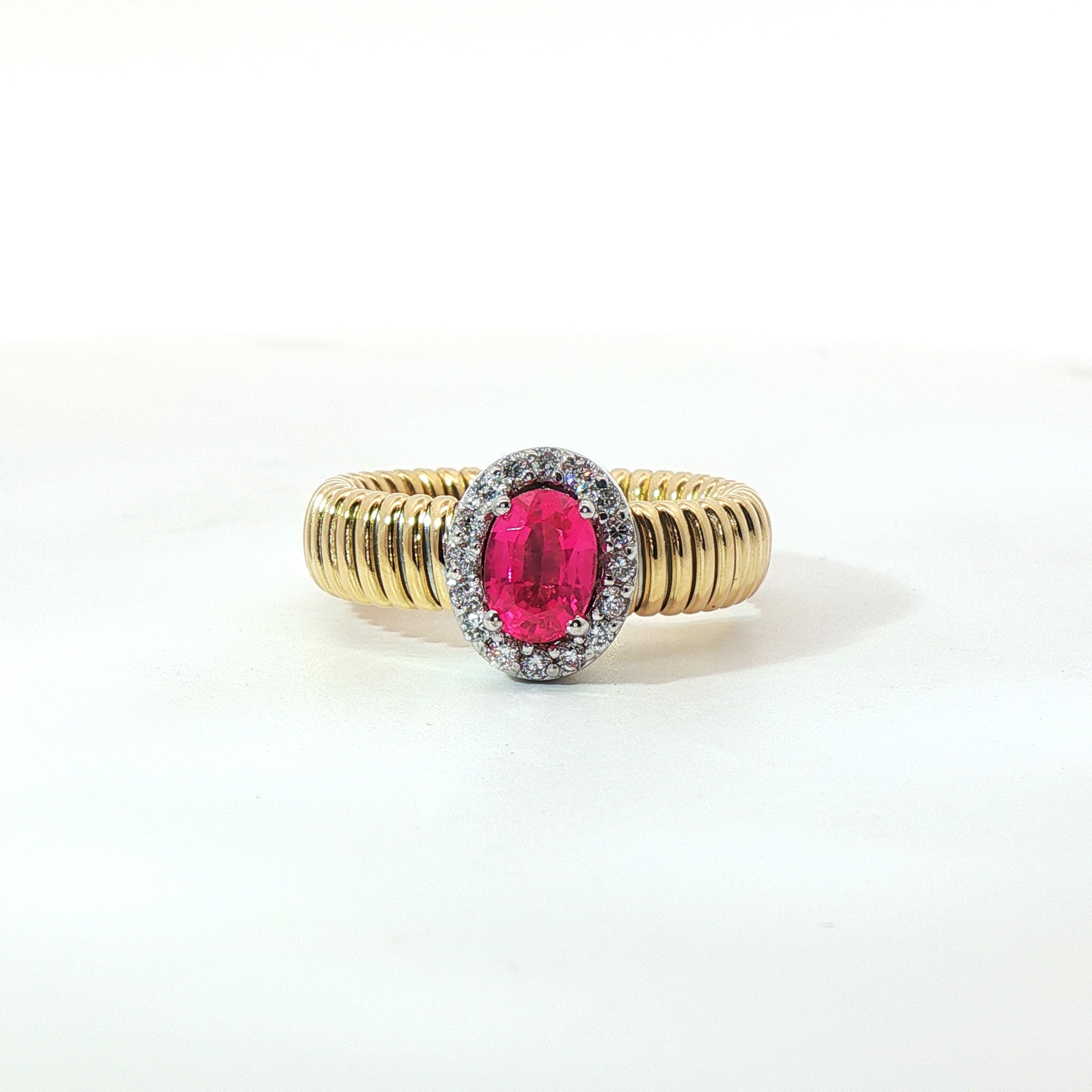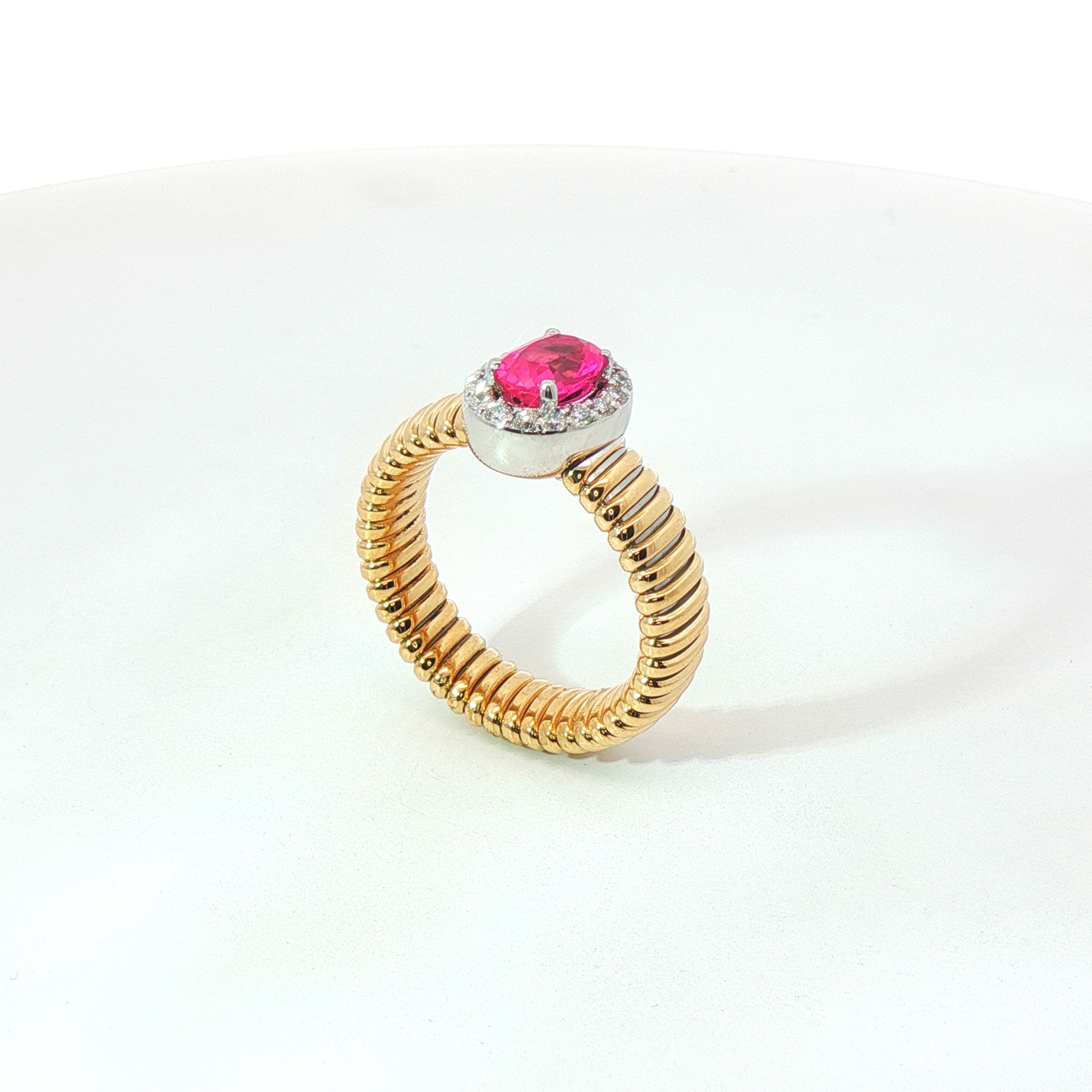 Solitario Queen con contorno in oro giallo tubogas con Zaffiro rosa Lab-Grown taglio ovale e Diamanti Lab-Grown taglio brillante.